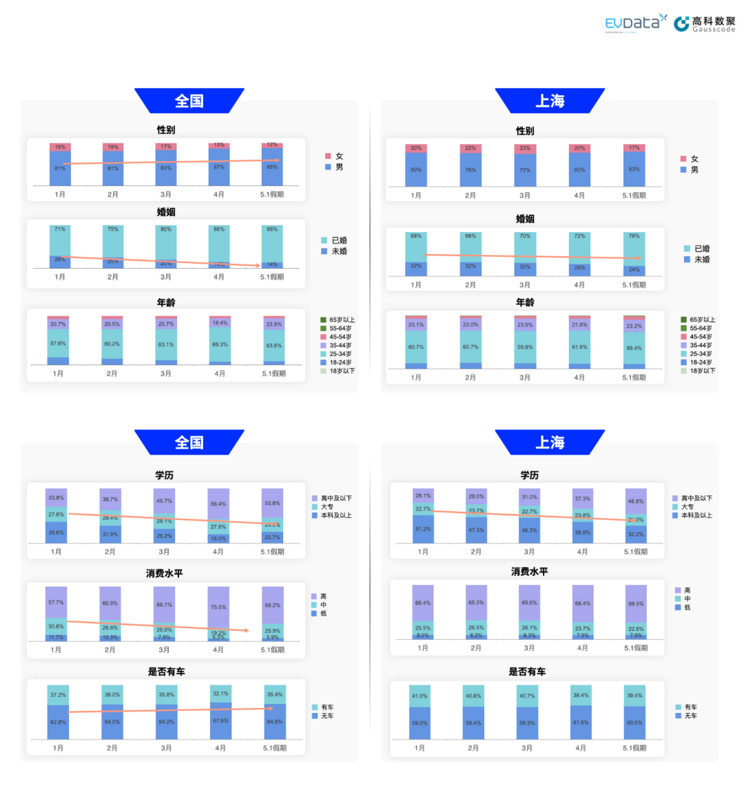 值得注意的是,新能源汽车市场竞争激烈,这也为本土车企带来了独特的竞争机遇。那么从大数据角度看,全国和上海新能源汽车关注人群有哪些变化趋势?上海新能源汽车出行特征如何?上海新能源汽车数据中心联合WM视讯平台 WM,一同透过数据带你看今年上海新能源汽车“五一”出行的新趋势。