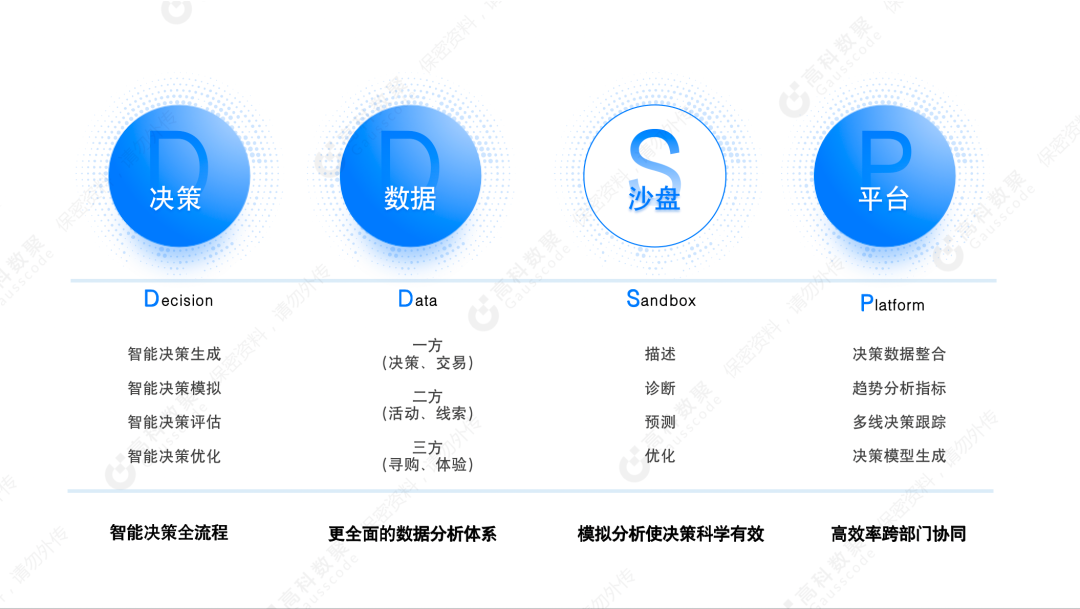 WM视讯平台 WM智慧决策平台DDSP(Decision  Data Sandbox  Platform)从销售、市场、服务,以及智能制造等重要应用场景出发,从传统的专家决策方式向基于数据驱动的数智化决策进行全面升级。